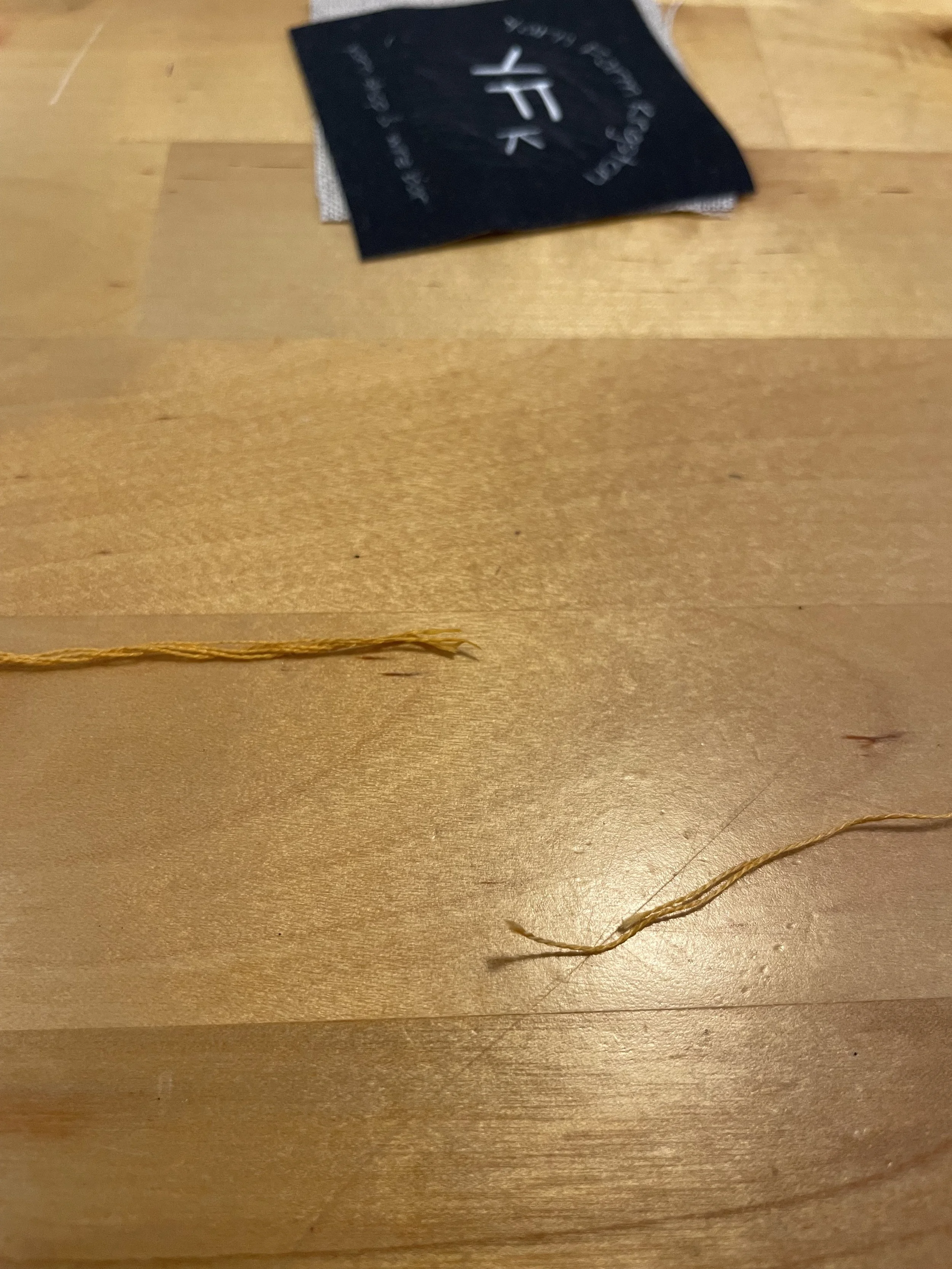 Two strands of embroidery floss, each with 6 threads